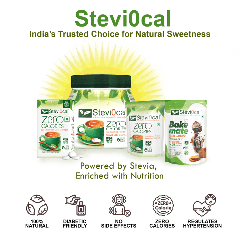 Experience the refreshing taste of Stevi0cal, a calorie-free stevia sweetener crafted from the finest stevia leaves for a healthier lifestyle without sugar or carbs.