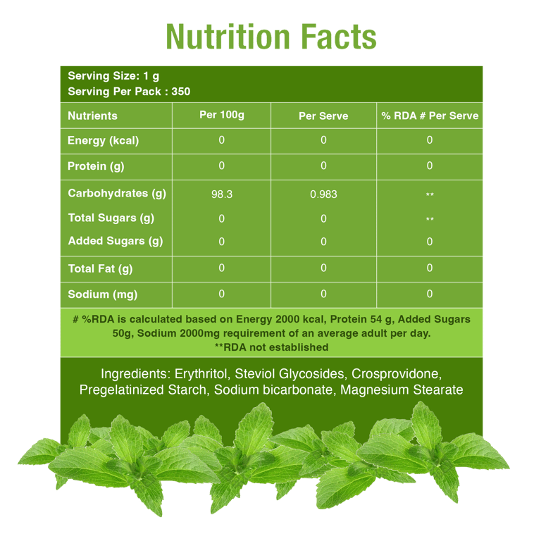 The stevia leaf extract used in Stevi0cal is a high-purity sweetener containing the best-tasting parts of the stevia leaf. It is approved by FSSAI (India), FDA (USA), EFSA (Europe)